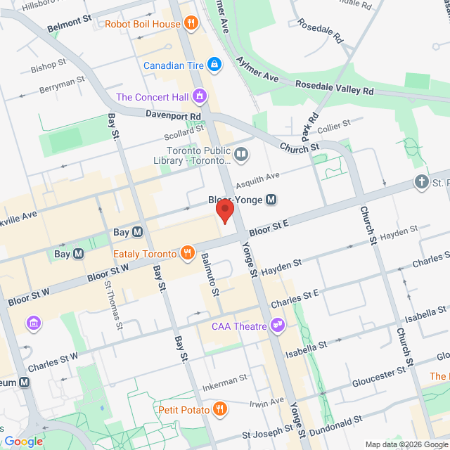 Located at Yonge and Bloor, this office is accessible from the Yonge-Bloor subway station by walking towards West in the underground hallway. Take the escalators to go up to the 2 Bloor West building and take the elevators on the rightto the 7th floor. If you're coming from the street, enter through the revolving doors between the CIBC and Lululemon, and take the elevators on the left to the 7th floor. (Please note, the elevators are locked for security reasons after 5pm and on weekends. For sessions after these times, your therapist will meet you on the ground floor and bring you up to the office.)